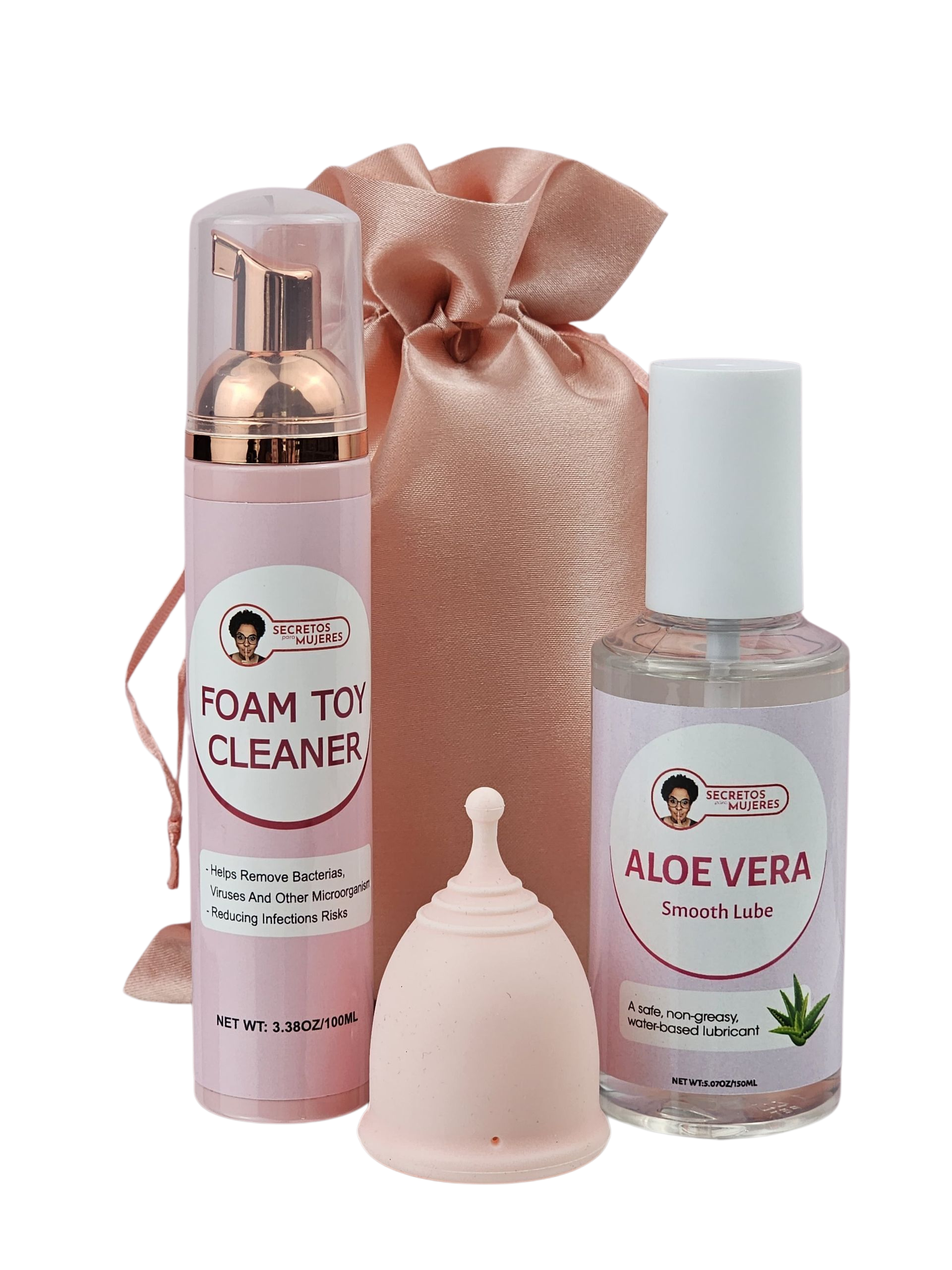 - Lubricante de Aloe Vera | Sin Fragancia (5.07 oz): Un lubricante suave e hidratante que facilita la inserción y extracción de la copa menstrual sin irritación.
