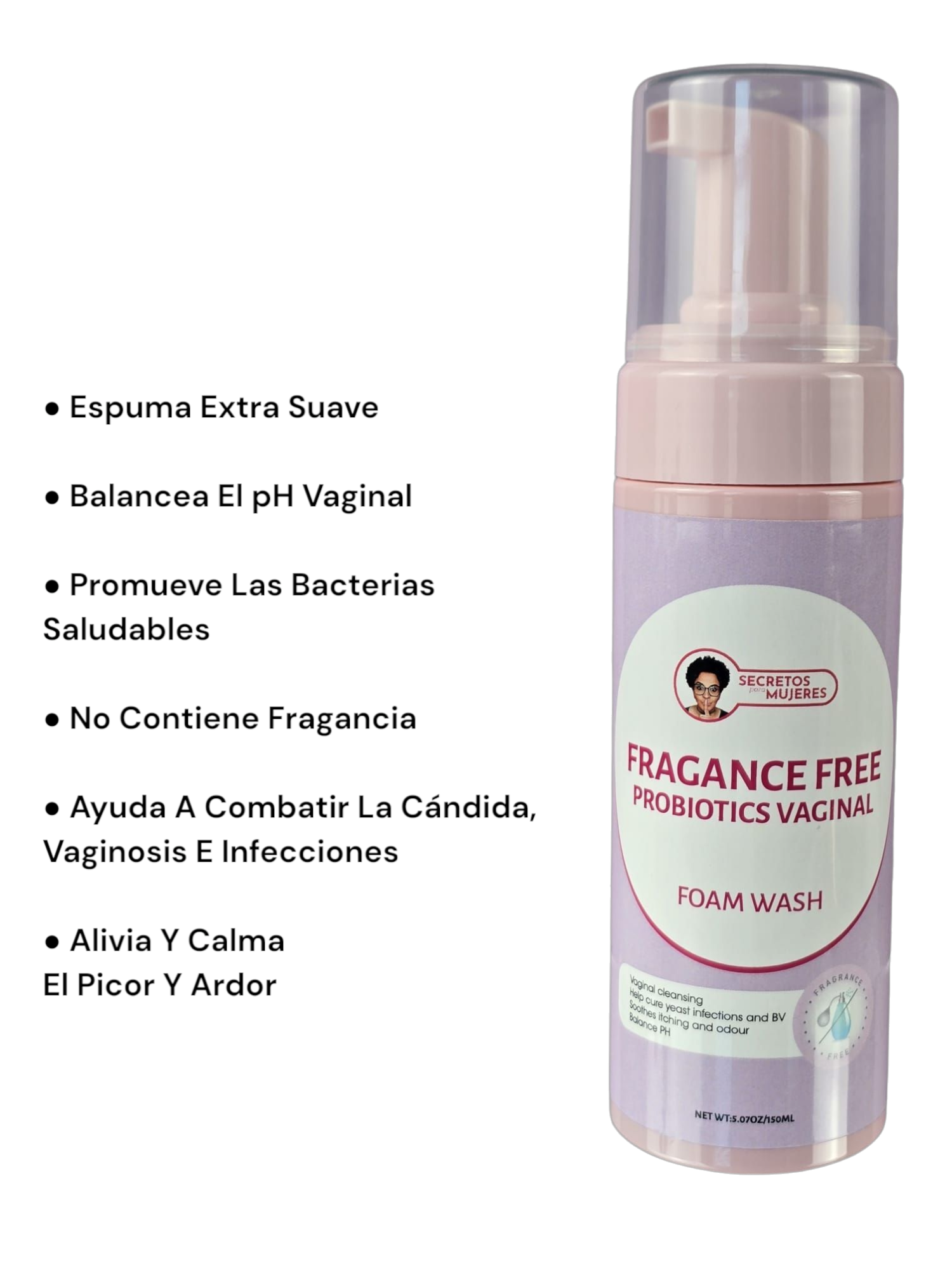 - Jabón en Espuma Vaginal Probiótico Sin Fragancia (5.07 oz): Limpia, calma y equilibra la flora vaginal.